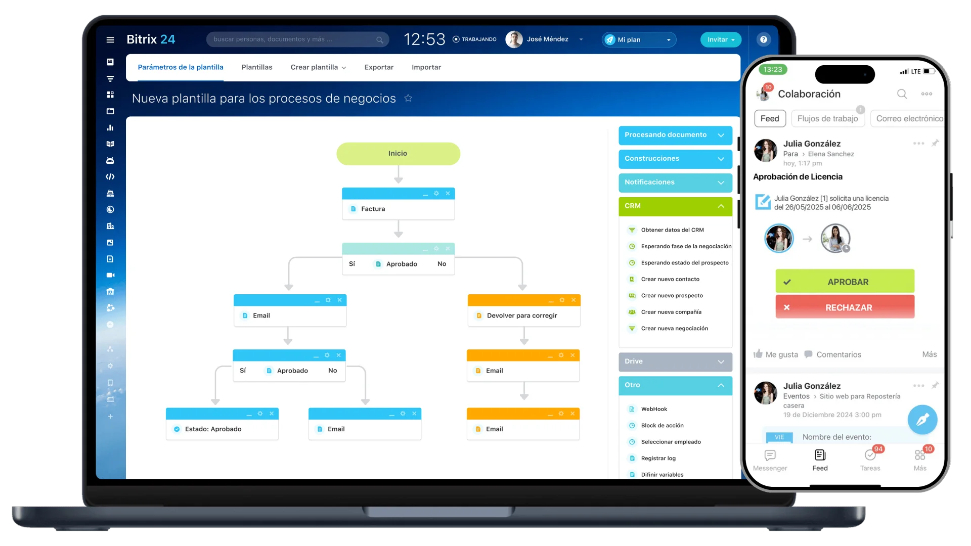Incorpora plantillas y procesos preconfigurados que guían cada etapa comercial, desde la prospección hasta el cierre, asegurando consistencia y resultados.